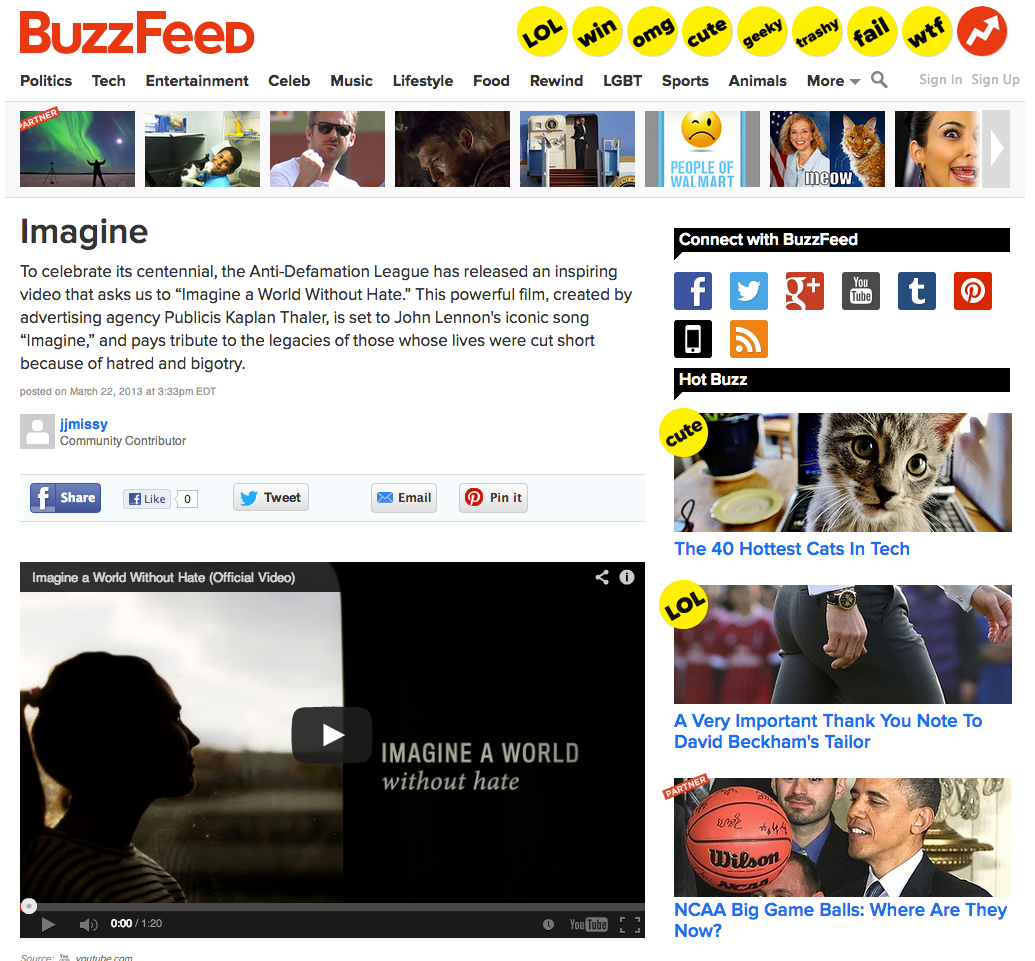 Mashable "Top Ten Most Inspirational Videos of 2013, AICP finalist, Effie finalist